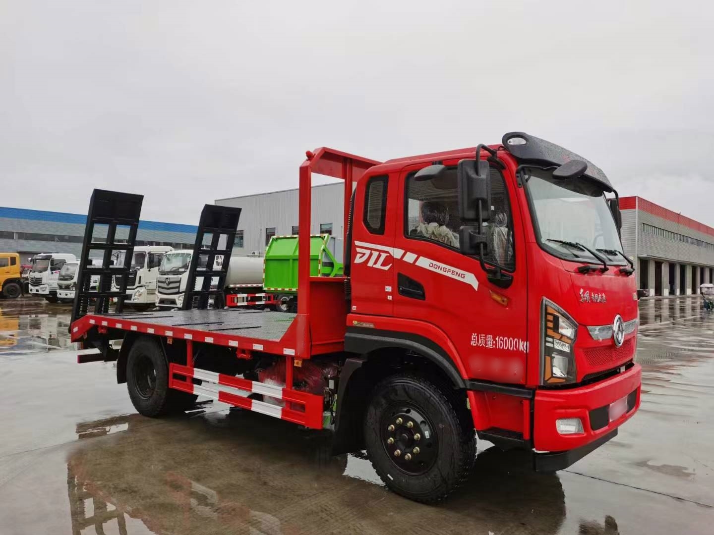 Aflatbed transport vehicle also known as a flat trailer, bulldozer transport vehicle, excavator transport vehicle, flatbed transport vehicle, hook machine transport vehicle, excavator flatbed truck, excavator trailer, excavator flatbed truck, hook machine flatbed truck, hook machine flatbed trailer, etc., is used to transport non removable machinery such as excavators, loaders, harvesters, etc.