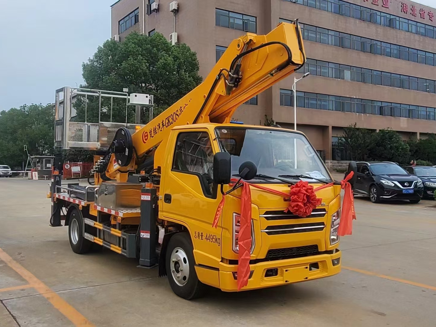 Aerial work truck is a type of engineering truck designed specifically for high-altitude operations, mainly used in fields such as construction, electricity, communication, and landscaping. It controls multiple hydraulic cylinders through hydraulic or electric systems and can lift up and down for operation. A high-altitude work vehicle usually consists of three parts: a chassis, a lifting mechanism, and an operating platform. The chassis can be a car or engineering machinery chassis, with driving and load-bearing functions; The lifting mechanism is responsible for achieving the lifting and lowering of the operating platform; The operating platform is the main place for workers to carry out high-altitude operations.
