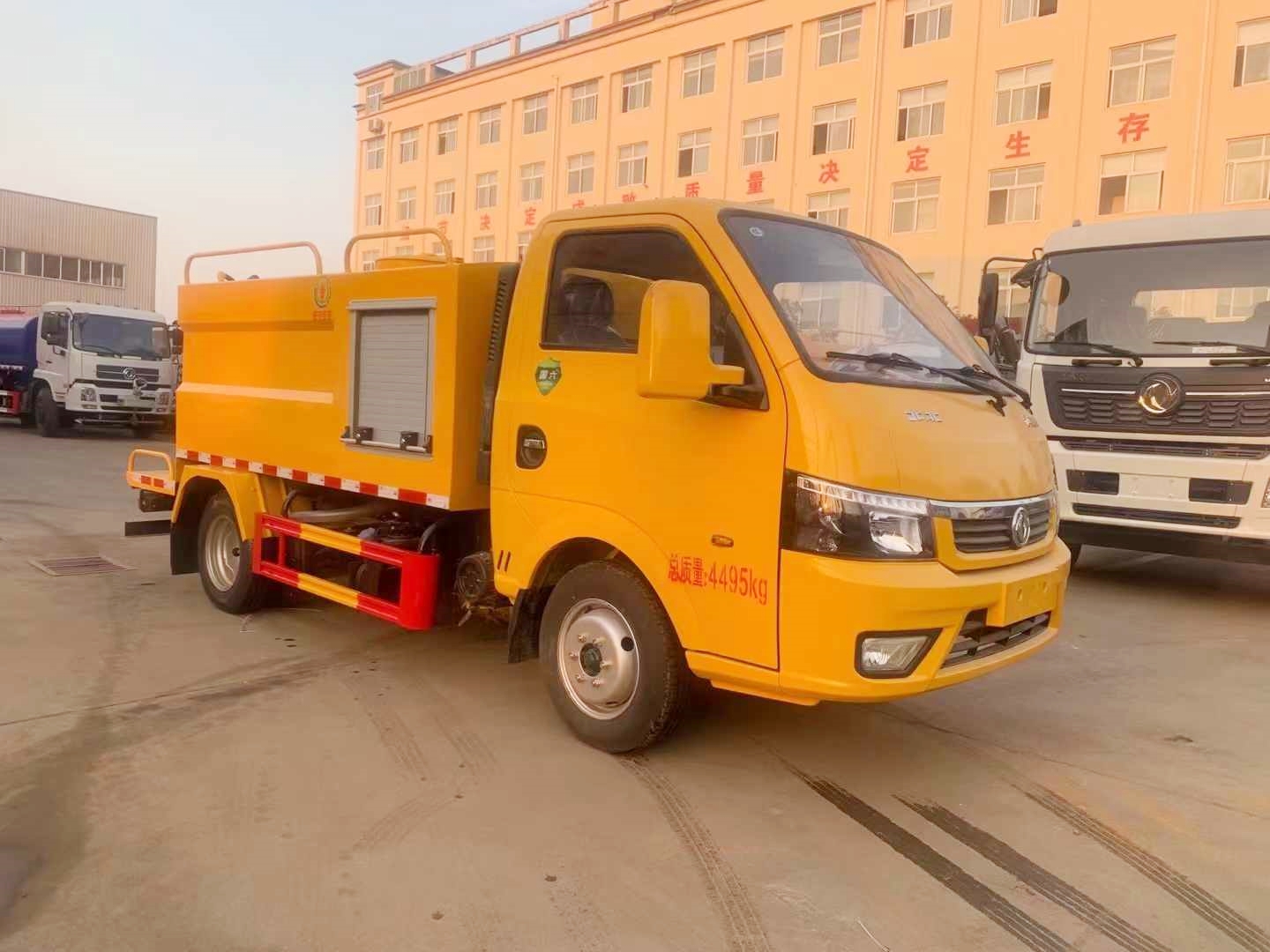 The water tank has a capacity of 2 tons, is equipped with Honda gasoline engine, German Fupin high-pressure water pump, front high-pressure water spray rod, fixed-point pollution cleaning device, rear 20 meter reel, standard cleaning gun and hand push cleaning device